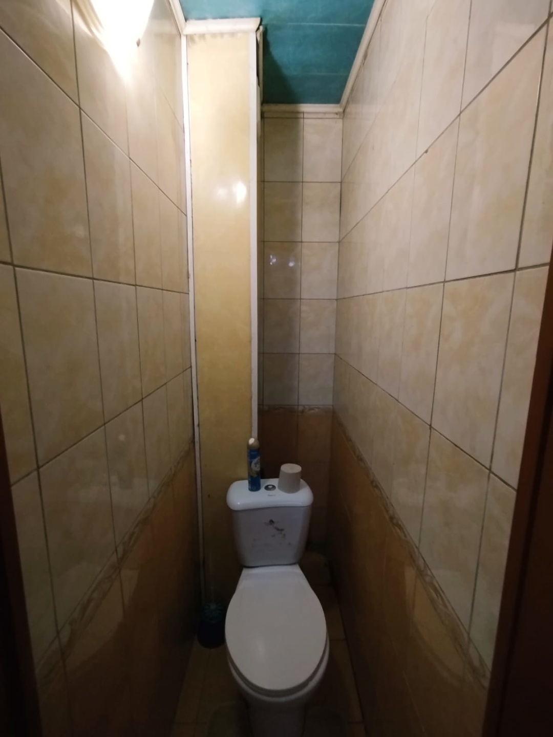 Санузел-раздельный, на полу и стенах выложен кафель, потолок обшиты пластиковыми панелями,
