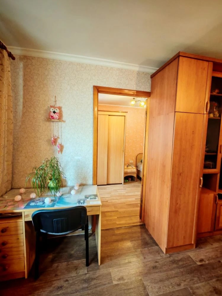 Квартира расположена во втором этаже пятиэтажного кирпичного дома. Общая площадь составляет 58.9 квадратных метров, жилая зона занимает 44.4 квадратных метра, а кухня имеет размер 5.9 квадратных метров. Пространство грамотно организовано, что позволяет комфортно разместиться всей семье.